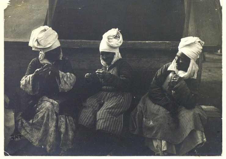 Круковский М. А. Дәстүрлі киімде базарда отырған тұрмыстағы әйелдер. Қазақстан. 1914 жыл
