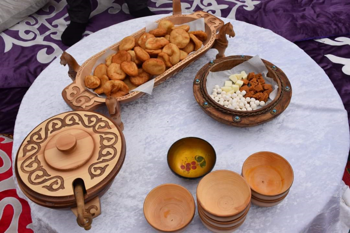 "Киіз үйде кең дастархан жайылады. Онда қалаға келген қонақтар, жергілікті тұрғындар дәмнен ауыз тиеді. Наурыз көже тегін таратылады. Ақсақалдар ізгі ниетпен батасын береді. Белгілі бір ұжымдар үлкен кісілерге, ардагерлерге шапан жабады. Ал балалардың тұсауы кесіледі", - дейді Есет Табынбаев.