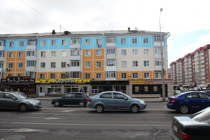 Также новые цвета обрел и дом по проспекту Сарыарка. Желтую пятиэтажку окрасили в синий и белый цвета.