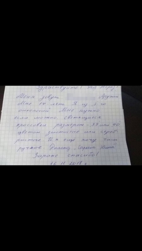 Большая партия писем пришла из отделения детской онкологии. Шестилетний мальчик Мансур попросил вертолет, который управляется с помощью пульта.