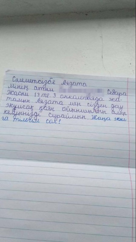Имангали - всего три года, он пока не умеет писать, поэтому за него написала мама. Она попросила зимнюю верхнюю одежду и штанишки, так как этих вещей у мальчика нет.