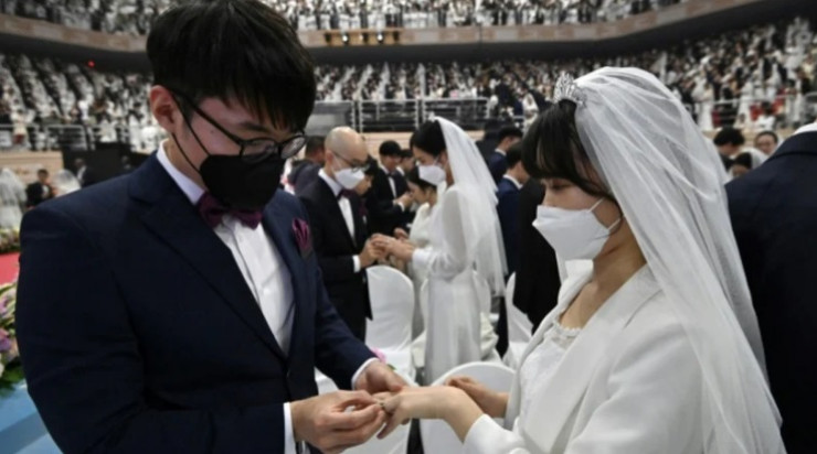 Вирус өршіп тұрған кезде, Кореяда 10 ақпанда бірден 6000 жұп үйленген. Олардың көбі өзге де жұптар секілді беттеріне маска тағып шыққан.