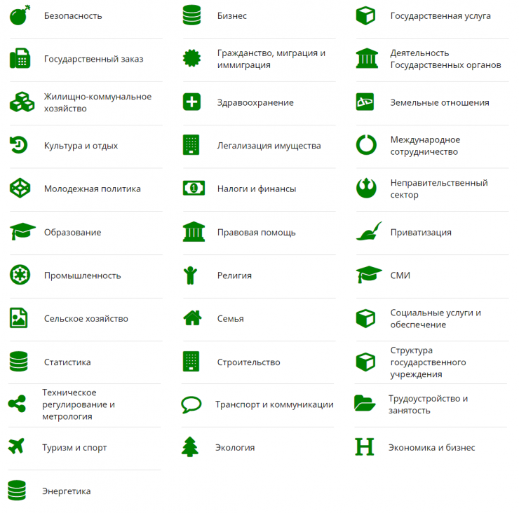 Кроме того, пользователей eGov смутило, что несколько разделов, не связанных между собой, имеют одинаковые иконки, к примеру разделы "Бизнес", "Статистика", "Энергетика".