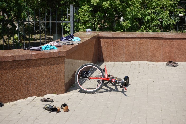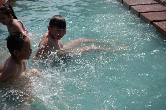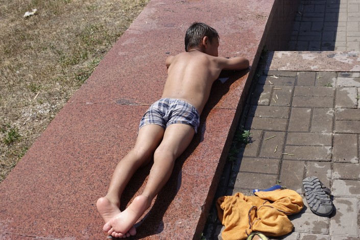 Те, кто постарше, предпочитают спасаться от жары на городском пляже.