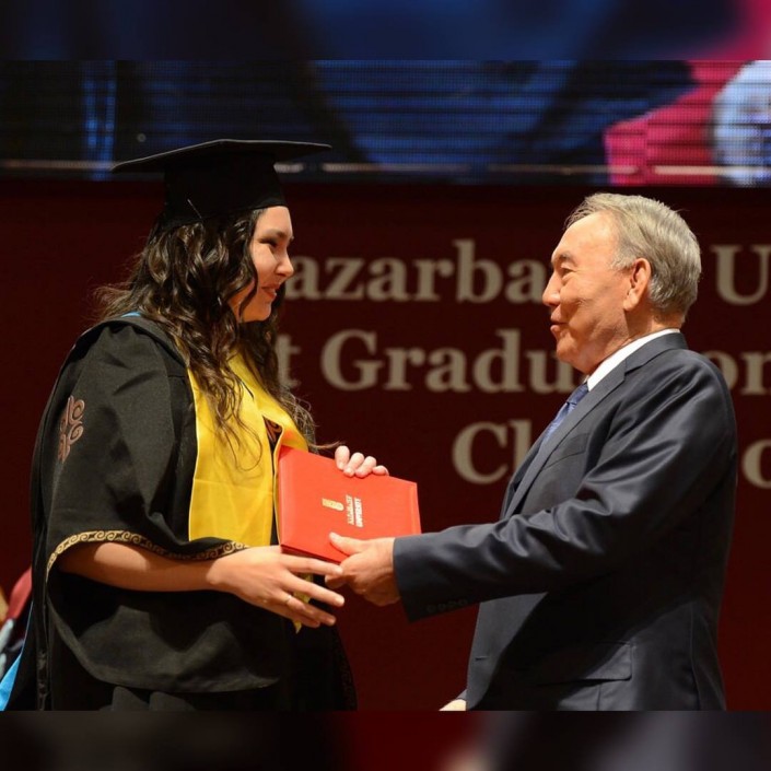 Это был, как отмечается, один из первых выпусков студентов Назарбаев Университета. Тогда девушка получила степень "Магистр в управлении образованием".