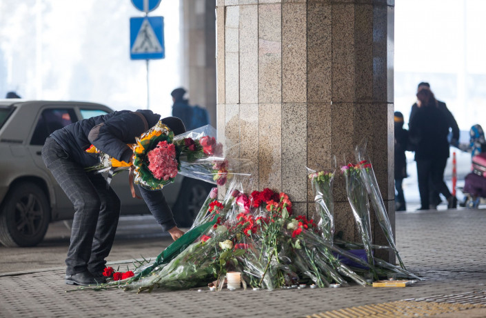 Неизвестный прихватил с собой букеты цветов, лежащие в память о жертвах авиакатастрофы под Алматы рядом со зданием аэропорта. Фотограф Вячеслав Батурин находился на месте событий и запечатлел происходящее, после чего рассказал о произошедшем в соцсетях, передает Tengrinews.kz.