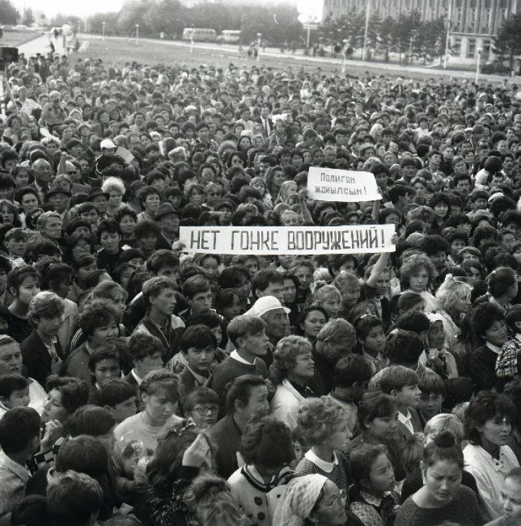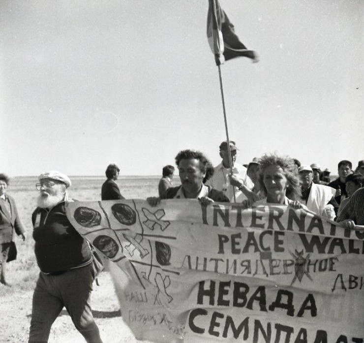 1990-1991 жылдары атақты ақын, қоғам қайраткері Олжас Сүлейменов бастаған "Невада-Семей" қозғалысы атом бомбасын сынақтан өткізуге қарсы митингілер, жиналыстар, симпозиумдар, бейбітшілік шерулерін өткізді. Алматыда, Семейде, т.б қалаларда. Мыңдаған адам Алматы, Семей, Курчатов шеруіне қатысып, ядролық сынақты тоқтатуды талап етті. Курчатов қаласына жақындағанда, биік тікен қоршаудан өте алмай, іс-шараны далада ұйымдастырды, Семей қаласында үлкен митинг өткізді. Онда сөйлегендер Совет өкіметінің атом бомбасын сынаған кездегі адам тағдарына, жан-жануар әлеміне, табиғатқа жасаған қылмысының бетін ашып жария етті. Осы бейбітшілік шеруінде әлгі соғыс ұшактарының биіктікте жарылыс жасауы көзбояушылық екенін анықтадық.