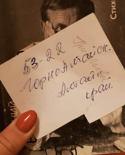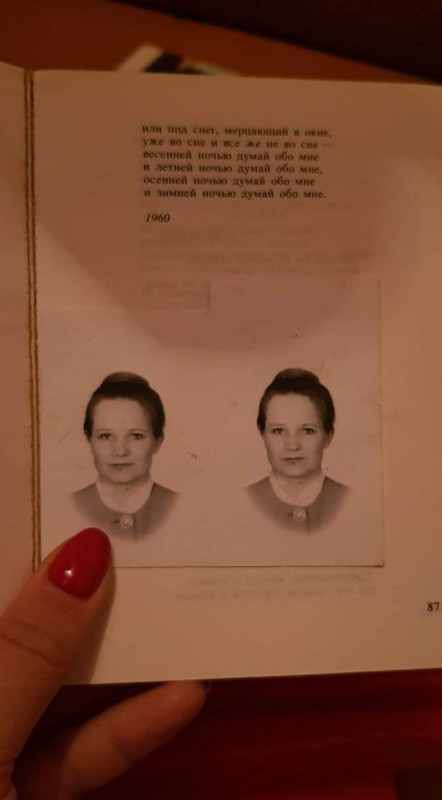 Как фотография попала в книжку, мы до сих пор не знаем. Александра предполагает, что томик стихов принадлежал близкой подруге ее мамы. Когда подруга умерла, ее родные скорей всего не смогли перевезти огромную библиотеку из Караганды в Россию, и поэтому отдала некоторые издания в Экологический музей.