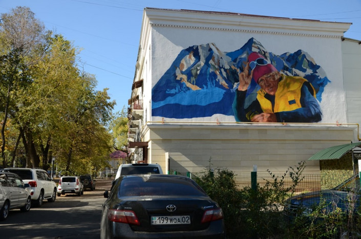"В Алматы пополнение - новый мурал! На нем изображен легендарный казахстанский альпинист Анатолий Букреев. Он покорил 11 восьмитысячников", - говорится в блоге об Алматы в Instagram