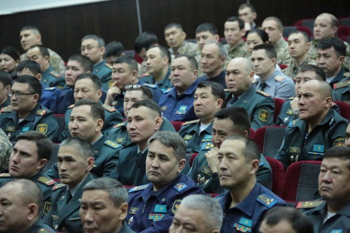 Мероприятие началось с проникновенной лекции об опасности коррупции. На сцене выступает подполковник Нурбол Алтынбеков, старший офицер управления по противодействию коррупции Главного управления военной полиции. Его внимательно слушают десятки командиров войсковых частей и начальников государственных учреждений.