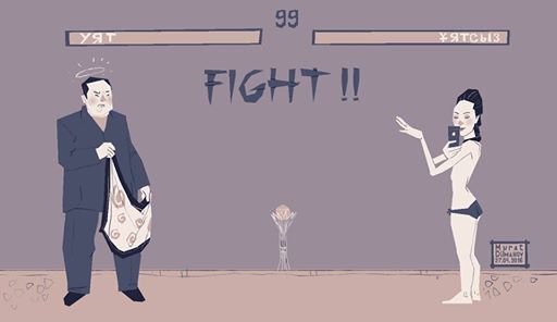 Рассказал художник и об основном занятии героя. Так, сейчас его главным "оппонентом" является блогер Ұятсыз, которая прикрывает свою наготу только смартфоном и трусиками. Как известно, ранее лидирующие позиции в соцсетях занял пост одного из пользователей, в котором поднимался вопрос запрещенных для женщин действий. В частности, автор с сарказмом написала, что нельзя "говорить на тему секса, ибо это нескромно". "Она подняла тему и сковырнула все проблемы", - говорит Дильманов. В свою очередь, по версии художника, Уята это не устраивает и он якобы вызывает блогера Ұятсыз на поединок. Пока художник подготовил только иллюстрацию поединка, но в ближайшие дни Дильманов создаст и маленький GIF-ролик самого поединка между героями. "У него есть способность накрывать платочком. Когда он, во время боя, накинет на нее платок - у нее будет голова кружиться, как в знаменитой игре Mortal Combat, и будет появляться фраза "Ұяталити", - рассказал художник.