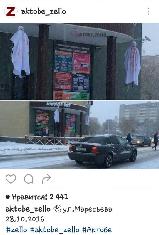 Одно из заведений в Актобе "напугало" горожан накануне Хэллоуин Фото с аккаунта aktobe_zelo в Instagram.
