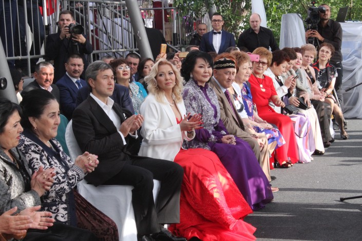 После этого перешли уже к официальной регистрации брака. Молодые принесли друг другу клятву верности и обменялись кольцами. Церемонию провела самая знаменитая сваха страны Айгуль Бабаева.