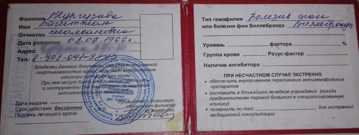 Диагноз "Болезнь Виллебранда с протекающей тромбоцитопенией" Багитжан Нургузовой поставили в 1998 году.