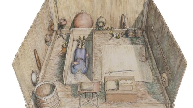 К исследованию гробницы подключились археологи из Лондонского музея археологии (Mola). Они обнаружили отлично сохранившуюся погребальную камеру размером 4 квадратных метра с 40 редчайшими артефактами VI века. По словам ученых, это самое древнее христианское захоронение англосаксонской королевской особы. Среди редких артефактов - эмаль зубов, древний музыкальный инструмент лира и деревянная шкатулка, золотые монеты, позолоченное горлышко деревянного сосуда для питья, декоративные стеклянные стаканы и кувшин. Многие предметы привезены из разных стран.