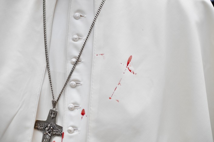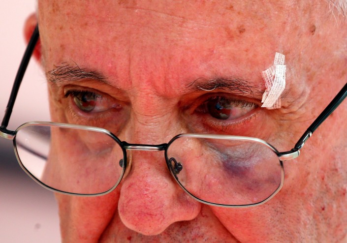 По данным издания, из-за резкого торможения транспортного средства 80-летний понтифик ударился лицом и рассек левую бровь, кровь попала на его одежду. Кортеж сделал вынужденную остановку, папе обработали рану. Чуть позже на его скуле и брови появился синяк.