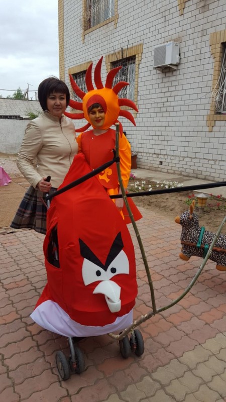 "Чего мы только не придумывали. Сначала хотели соорудить египетскую пирамиду или что-то из "Аватара" (фантастический фильм Джеймса Кэмерона - прим. автора), потом решили, что сложно. Пошли по пути наименьшего сопротивления. В итоге получилась полицейская машина. Пришлось, конечно, повозиться и переделывать. Еще вчера до четырех утра красили, пока гуашь не закончилась. Для коляски в стиле Angry birds долго искали рогатину. Все деревья в округе облазили, пока не нашли подходящую ветку. Роли тоже распределяли с учетом характера, внешности", - рассказывают участницы парада.
