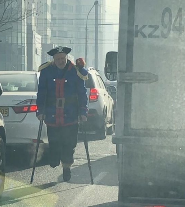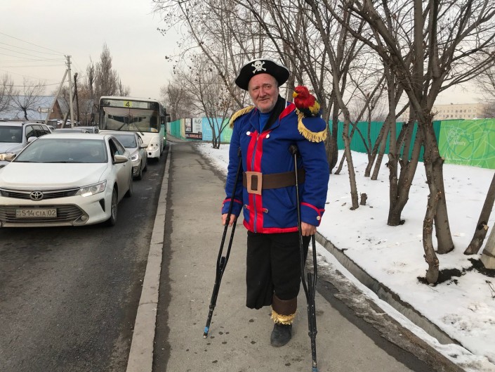 На днях в социальных сетях появилось фото мужчины на костылях, в костюме пирата. Оказалось, что он собирает милостыню на оживленной дороге в Алматы. Корреспондент Tengrinews.kz отыскал одинокого пирата с алматинского перекрестка.
