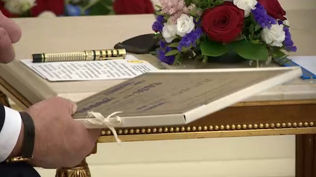 Президент Казахстана принял документы от Александра Лукашенко. Скриншот видео.