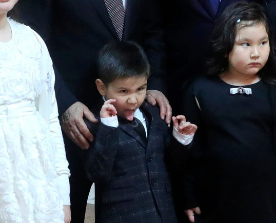 "Вот так выглядит детская непосредственность. А спорим, у вас нет такой фоточки с двумя президентами? Внук Айтматова", - говорится в Telegram-канале "Короче".