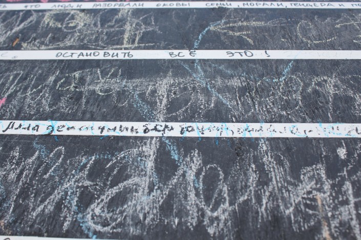 На доске можно прочитать слова скорби и увидеть фотографию погибшего солиста американской рок-группы Linkin park Честера Беннингтона.