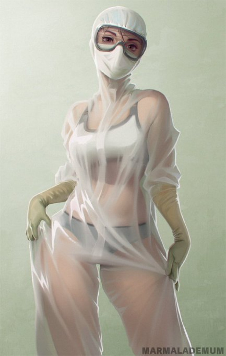 По данным портала, девушка является не медсестрой, а врачом. Она окончила Рязанский медицинский университет. На новом фото медик также в купальнике и защитном костюме, однако сфотографировали ее уже с другого ракурса.