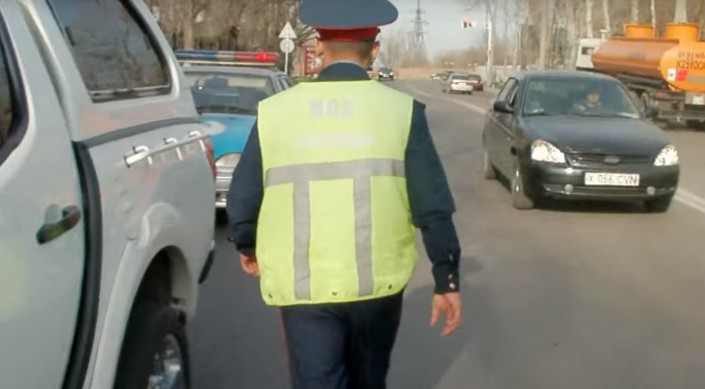 Позитивный шымкентский полицейский удивил водителей Кадр из видеоролика YouTube