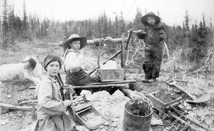 Снимок сделан примерно в 1898 году в канадской территории Юкон. Он был найден в архиве Вашингтонского университета. На ней изображены дети, занимающиеся ручным трудом, чтобы получить воду для выращивания зерновых культур. Девочка слева очень похожа на Грету Тунберг.