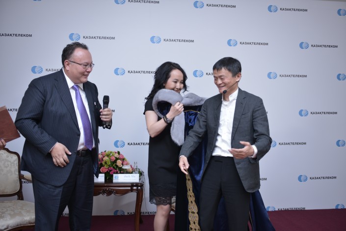 Председатель правления АО "Казахтелеком" Куанышбек Есекеев в конце мероприятия подарил основателю Alibaba Group шапан, отмечая, что это традиция казахского народа при встрече уважаемого гостя. Джек Ма в свою очередь поблагодарил организаторов за теплый прием.