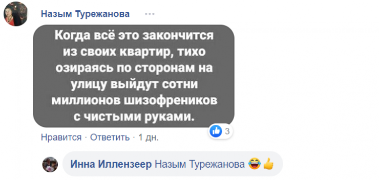 "Мне кажется, люди неделю домой не зайдут. Хоть где, но не дома. Главное, чтобы денег хватило", - написала Дана Нуржума.