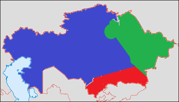 Пользователь сайта Pikabu.ru под псевдонимом idler представил карту Республики Казахстан, разделенную на три равные части по количеству населения. В каждой из этих частей проживает около 5,982 миллиона человек - треть от населения страны, составляющего около 17,94 миллиона.