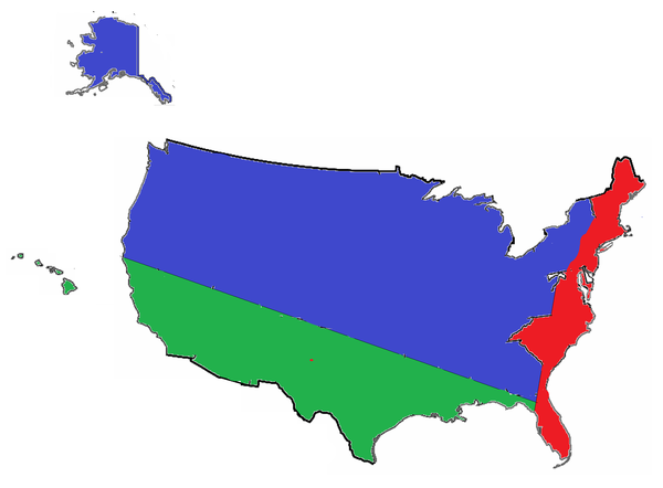 Кроме того, на портале Pikabu были также презентованы и карты других стран, разделенные на три равные части по количеству населения. Так пользователь RobbinBobbin представил Россию.