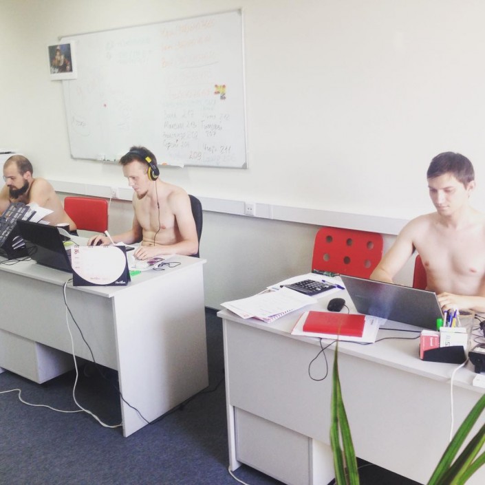Жители Беларуси буквально восприняли слова президента страны Александра Лукашенко, который, выступая на народном собрании 22 июня, призвал "раздеться и работать". Следуя совету национального лидера, многие белорусы сняли одежду прямо на рабочих местах, устроив в Сети голый флешмоб. Пользователи массово выкладывают обнаженные фотографии в Instagram с хэштегом #раздеватьсяиработать.