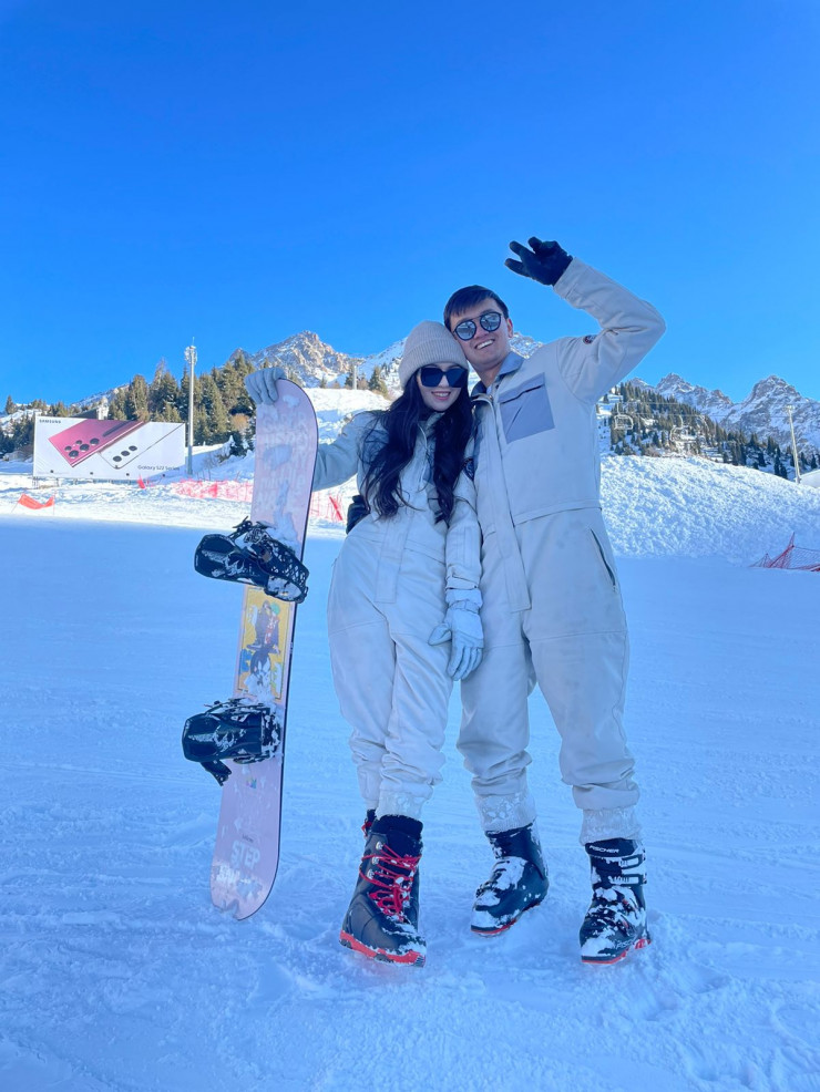 "Шымбұлақты шулаттық десек болады". Сноуборд пен шаңғы тепкен жас жұбайлар Қазнетті тәнті етті