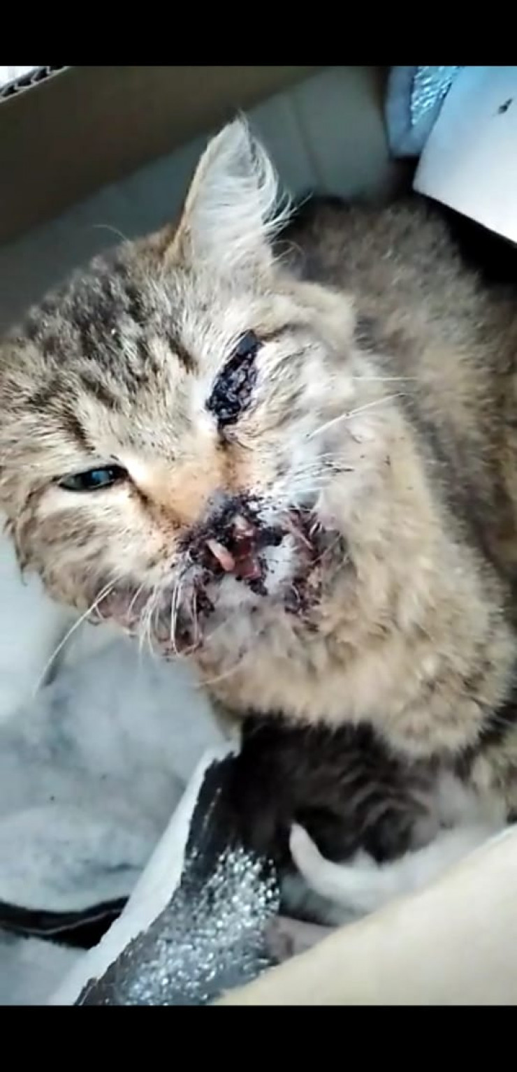"Состояние кошки было очень тяжелым. У нее была разбита полностью часть мордочки, подбит глаз, откушен кончик языка, все было в крови, она не могла есть и совсем не ходила в туалет. Когда она в первую ночь отходила от наркоза, она вскрикивала от боли. Это было жуткое зрелище. Оно не оставило равнодушной даже мою дочь, которая училась на медика и видела немало людских страданий. Удивляет, что даже в таком состоянии она нашла в себе силы вернуться к котятам. Некоторым людям есть чему поучиться у этой кошки", - рассказывает Римма Халиулина, которая приютила ее в дальнейшем.