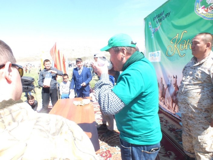 Следом состоялось первенство по выпиванию кумыса. Первое место в этом конкурсе завоевал житель Улытауского района Карагандинской области Алмас Бимагамбет. Он сумел выпить 4,3 литра кумыса без остановки.
