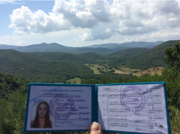 Так документ побывал в миланском аэропорту Малпенза, на озере Изео, в городе Брешиа, в амфитеатре Вероны, "прогулялся" по улицам Монтелупо-Фьорентино, сфотографировался с пизанской башней, а также совершил экскурсию по Риму, "обойдя" такие достопримечательности, как Алтарь отечества, Колизей и посетив Ватикан. Также студенческий билет вывезли в Париж, где блогер сфотографировал документ на фоне Лувра.