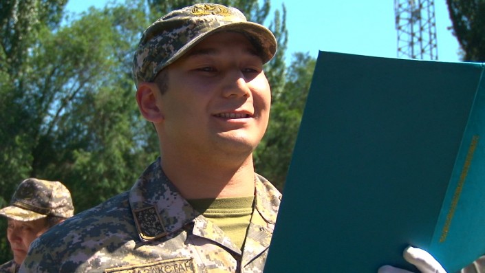 Тафгай "Барыса" Дамир Рыспаев, как и остальные новобранцы, прошел курс молодого бойца. "Я стал военнообязанным человеком, достойным гражданином Республики Казахстан. Я буду служить полноценный год. До воинской присяги я был здесь 35 дней. Для меня это все ново. Самое интересное и сложное было на полигоне: надели ОЗК, была невыносимая жара 32 градуса, и мы побежали марш-бросок!".