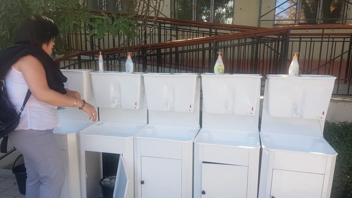"Плеснув в ладошки жидкого мыла, они по очереди открывают краники всех рукомойников, ни в одном из которых нет воды. Зато ведра, стоящие в шкафчиках, переполнены, что хорошо видно на снимке. Эх, явно организаторы при подготовке форума упустили этот важный нюанс, не назначив "умывальников начальник(а) и мочалок командир(а)", - описала она ситуацию.