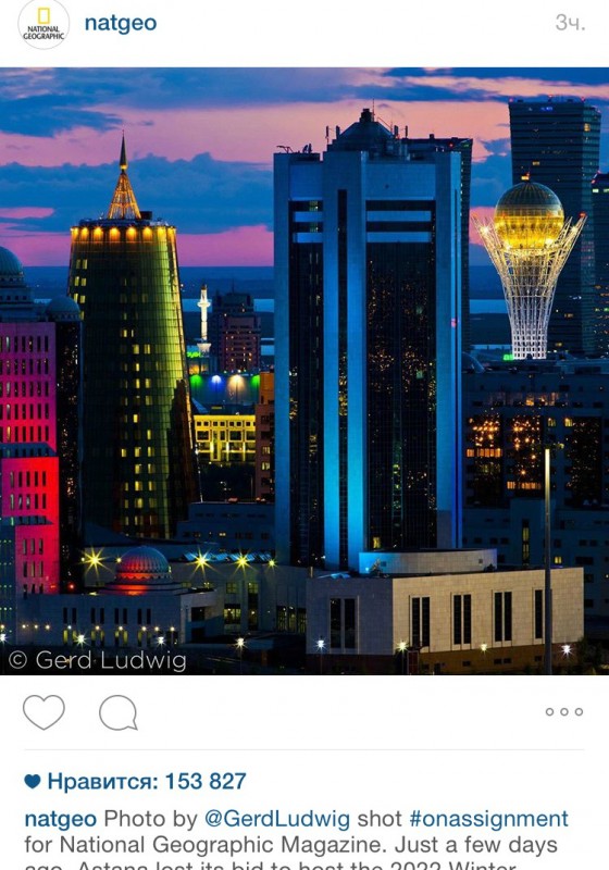 В Instagram National Geographic выложили потрясающую фотографию Астаны, сделанную Гердом Людвигом, передает корреспондент Tengrinews.kz.