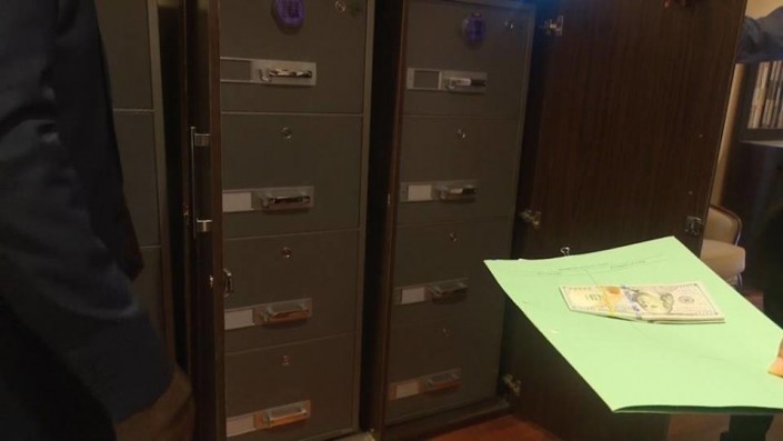 Получив судебный ордер, полицейские выломали дверь четырехкомнатной квартиры на седьмом этаже здания. Внутри они обнаружили три несгораемых шкафа, заполненных аккуратно упакованными пачками валюты. Помимо американских долларов, следователи изъяли более 27 тысяч фунтов стерлингов и более 23 миллионов нигерийских найр.