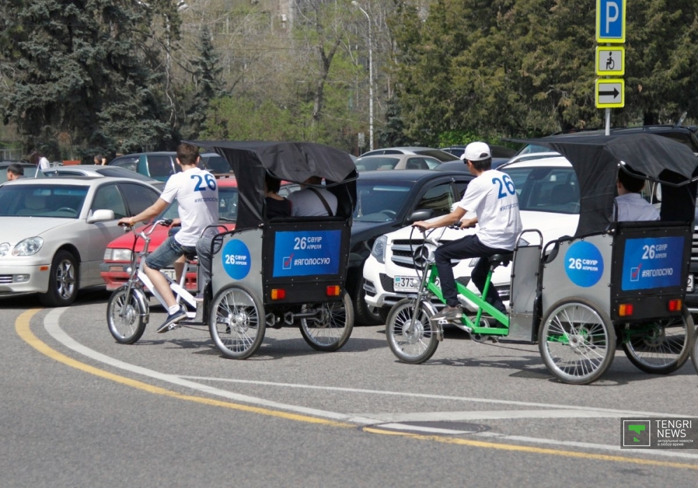 Проект Veloriksha был запущен при поддержке городского акимата. Так, в преддверии проведения выборов Президента Казахстана на велотакси будет наклеен баннер с цифрой 26. "Это дата проведения выборов Президента страны. Таким образом мы призываем горожан не быть пассивными и принять участие в голосовании. Мы считаем, что это будет интересным и ярким напоминанием о предстоящем важном событии", - рассказал организатор проекта. По его словам, сегодня, 14 апреля, а также 26 апреля, велорикши будут катать горожан бесплатно.