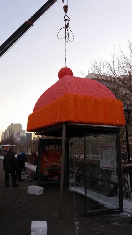 Жители Астаны активно комментируют появившиеся на крышах автобусных остановок украшения в виде вязаных шапок, передает Tengrinews.kz.