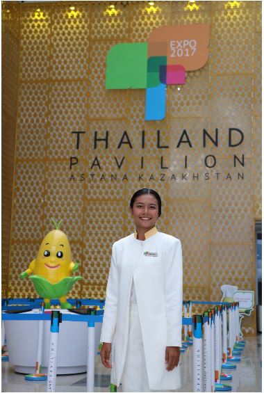 "Перед входом в павильон гости могут участвовать в розыгрышах уникальных биосумок, узнать много интересных фактов о Таиланде и стать ближе к культуре тайцев. Внутри павильона гостей знакомят с маскотом - кукурузой Палангом. Во втором выставочном зале наши гости приходят в восторг от 3D-шоу, которое было подготовлено нашими тайскими коллегами. А в третьем зале культура и технологические возможности Таиланда перемешиваются и дают уникальную атмосферу", - рассказывает волонтер павильона Нурсултан Ильяс. Он также считает, что павильон Таиланда с технической точки зрения - один из самых прорывных объектов EXPO