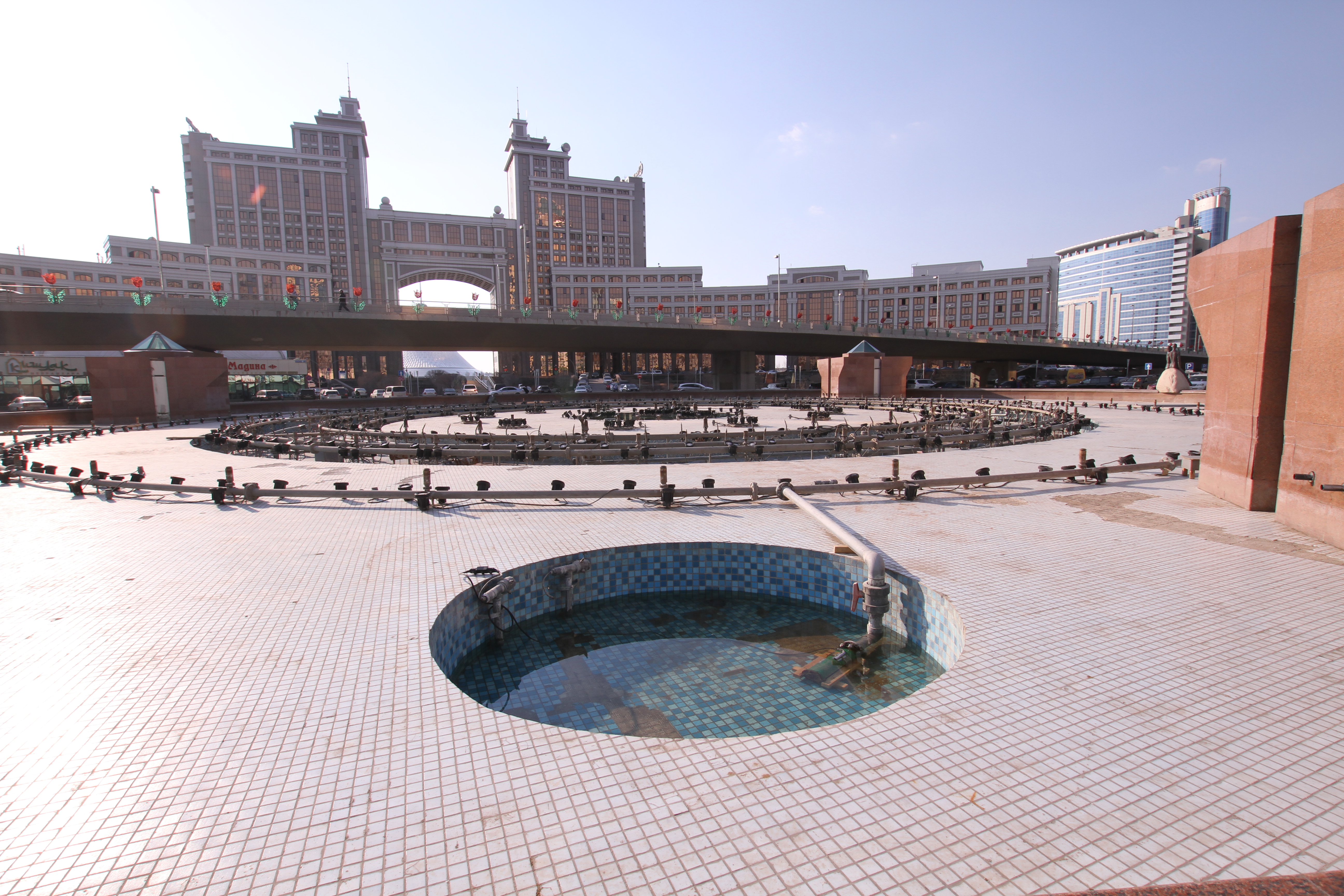 На ремонтные работы пока выделено 3 миллиарда тенге бюджетных средств. "Здесь все останется по-прежнему, меняется чисто материал на более долговечный и прочный. Раньше цементно-песчаные брусчатка, плитка были. Сейчас меняется все на гранит: облицовка стен, фонтанов, малые архитектурные формы, скамейки", - рассказал собеседник.