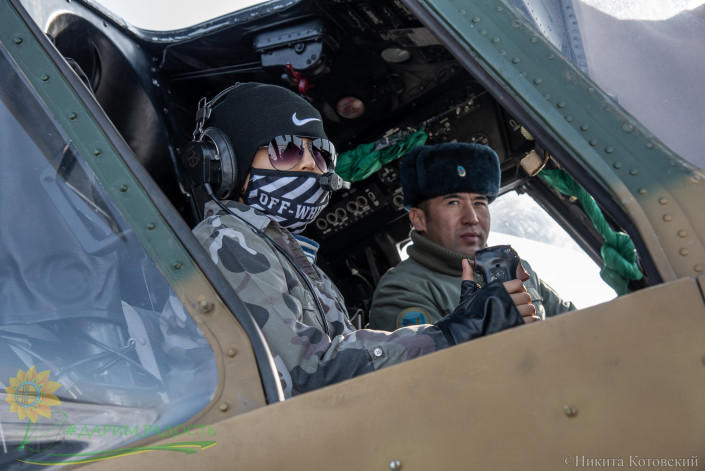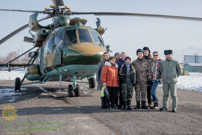Досанби увидел службу военных летчиков, настоящую боевую авиатехнику, наблюдал за подготовкой летного состава и полетами. Командир авиационной базы полковник Нурлан Байдулаев провел имитацию полета на вертолетах Ми-17 и UH-1, рассказал об управлении и технике пилотирования.  Полетать на военном вертолете мальчик не смог по состоянию здоровья, врачи запретили из-за сильных нагрузок на организм.