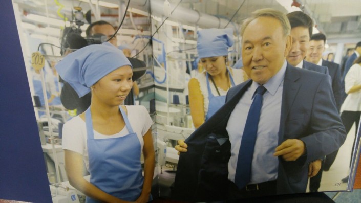 Подпись к фотографии: "Хочу сказать всем казахстанцам: надо покупать наши отечественные товары "Made in Kazakhstan". Посещение Главы государства ТОО "Казлегпром-Алматы".