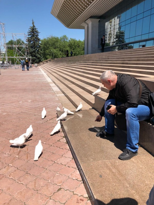 В центре Алматы, на площади имени Абая перед Дворцом Республики, заметили стаю ручных белых голубей, передает Tengrinews.kz.