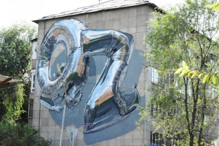 Первым начал свою работу в Алматы стрит-райтер из Англии под ником Fanakapan. Его работы украшают стены Нью-Йорка, Лос-Анджелеса, Майами, Берлина, Лондона, Парижа и других мегаполисов мира.Гигантские буквы в виде гелиевых шаров украшают один из жилых домов Медеуского района. Буквы QZ британский художник выбрал не случайно. Узнав, что Казахстан в скором времени может перейти на латиницу, стрит-артер решил закрепить новую аббревиатуру Казахстана на своем фасаде.