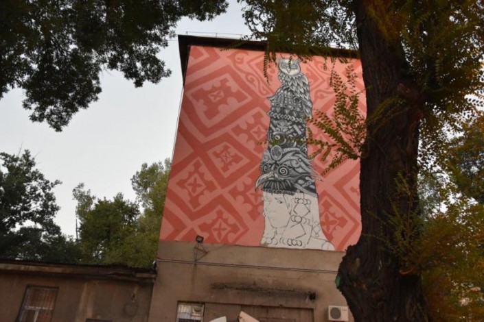 Уютный рисунок появился и на одном из жилых домов, расположенных в Ауэзовском районе вблизи ТРЦ "Спутник". Автор эскиза - молодой казахстанский художник Али Закир (Ali Zakir), участник команды TigrohaudCrew.